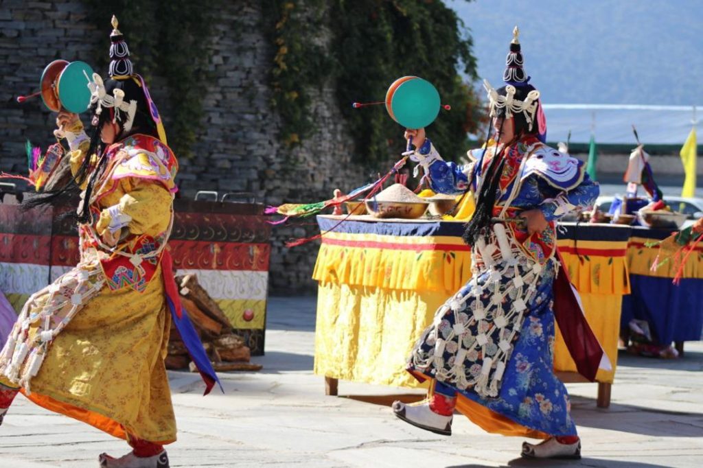 Located in the heart of northeastern Bhutan’s mountains, in Menbi Gewog, Lhuentse district, lies a hidden treasure known to but a few, Druk Zangri Kharmar. Druk Zangri Kharmar means ‘The Bhutanese (Druk) Zangri Kharmar (The Red Citadel of the Copper Mountain)’, which is the stronghold of Machik Labdrön in Central Tibet. This mountaintop village shelters the community of practitioners ignited in 1952 by Trulshik Rigdzin Lingpa, a direct student of Shuksep Lochen Chonyi Zangmo (1865-1953). While still in Tibet, Trulshik Rigdzin Lingpa had a vision of dakinis instructing him to save the tradition of Machik Labdrön by relocating to a place shaped like a fully blossomed lotus, in a land ruled by a Dharma king. It so happened that Trulshik Rigdzin Lingpa had a Bhutanese disciple, Tokden Tsewang Chöpel.